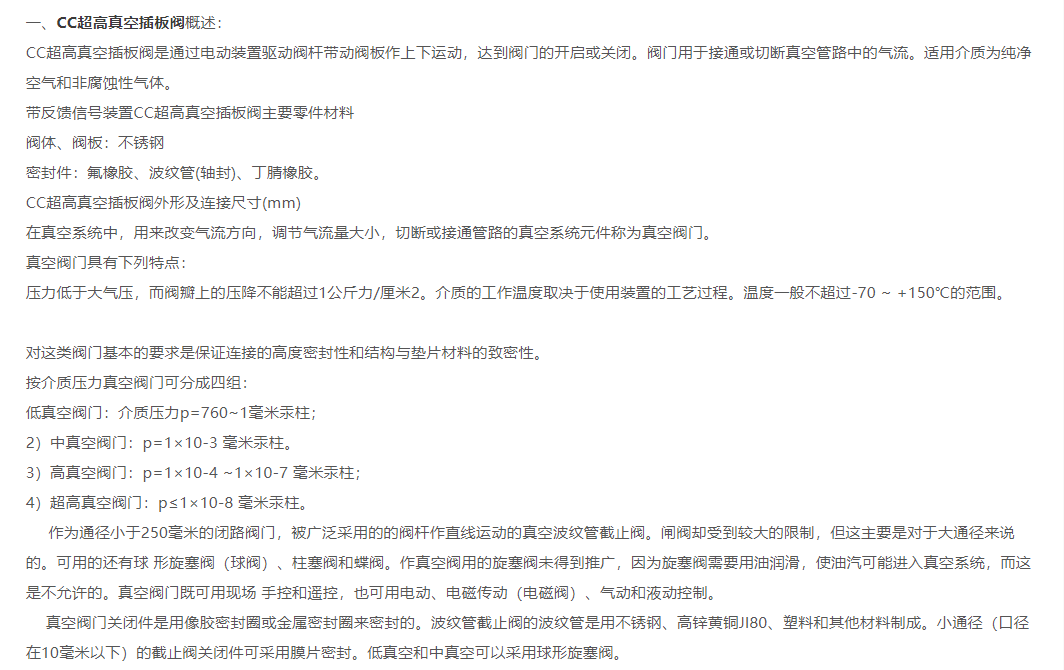 CC超高真空插板阀